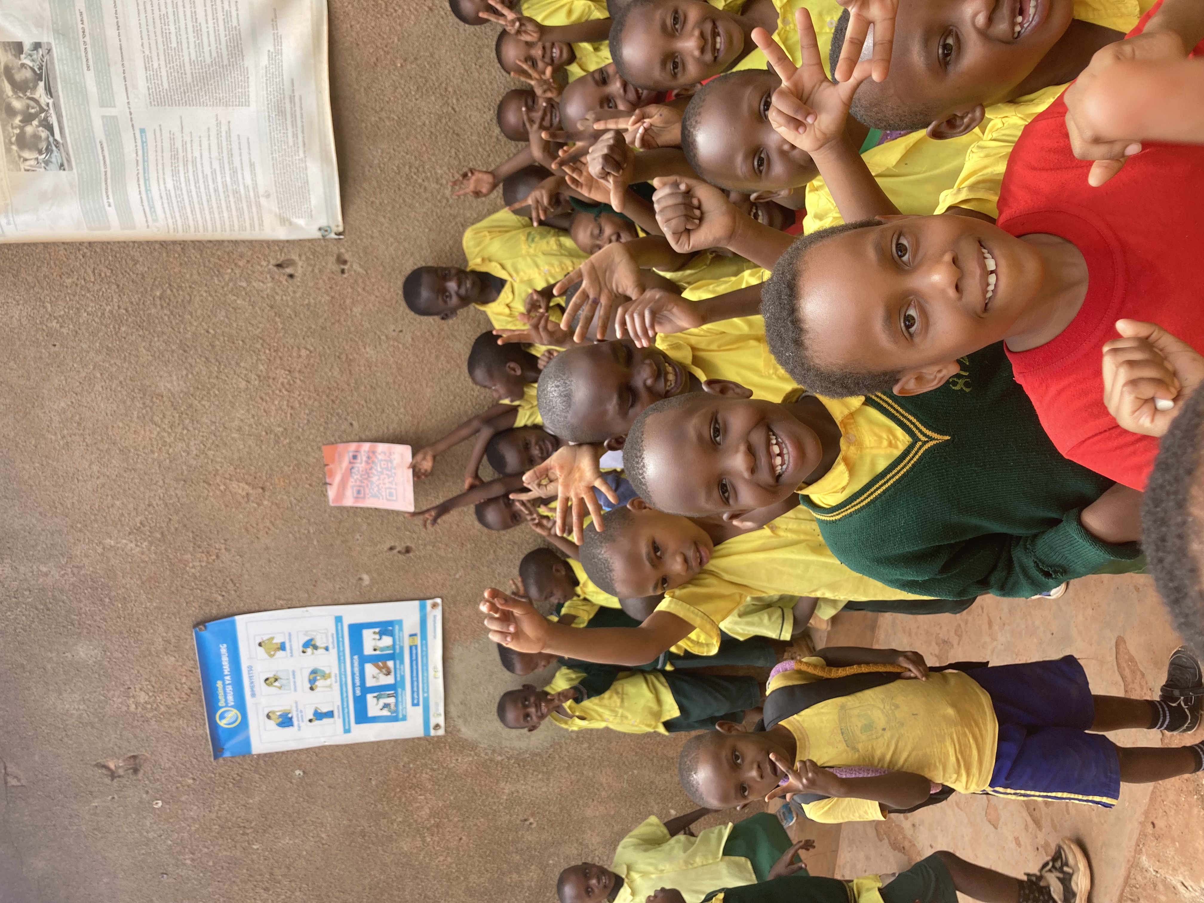 Gemeinsam mit dem Team des Partnerschaftsbüros Rheinland-Pfalz/Ruanda besuchten wir außerdem eine Schule, die ebenfalls mit unseren QR-Postern zur mentalen Gesundheit arbeitet. Auch dort hängen sie überall gut sichtbar aus. Die Lehrer:innen scannen die Codes, hören die Inhalte mit den Schüler:innen gemeinsam an und sprechen dann mit ihnen über die behandelten Themen.